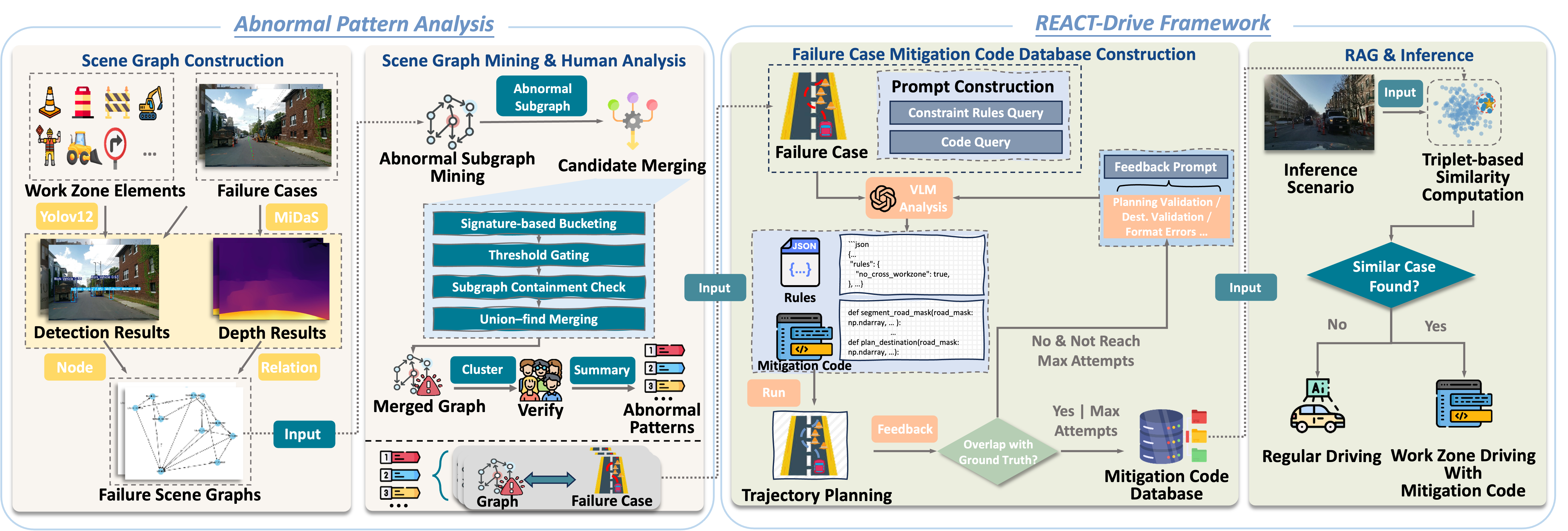 We propose REACT-Drive, a trajectory planning framework that integrates VLMs with Retrieval-Augmented Generation (RAG). Specifically, REACT-Drive leverages VLMs to convert prior failure cases into constraint rules and executable trajectory planning code, while RAG retrieves similar patterns in new scenarios to guide trajectory generation.